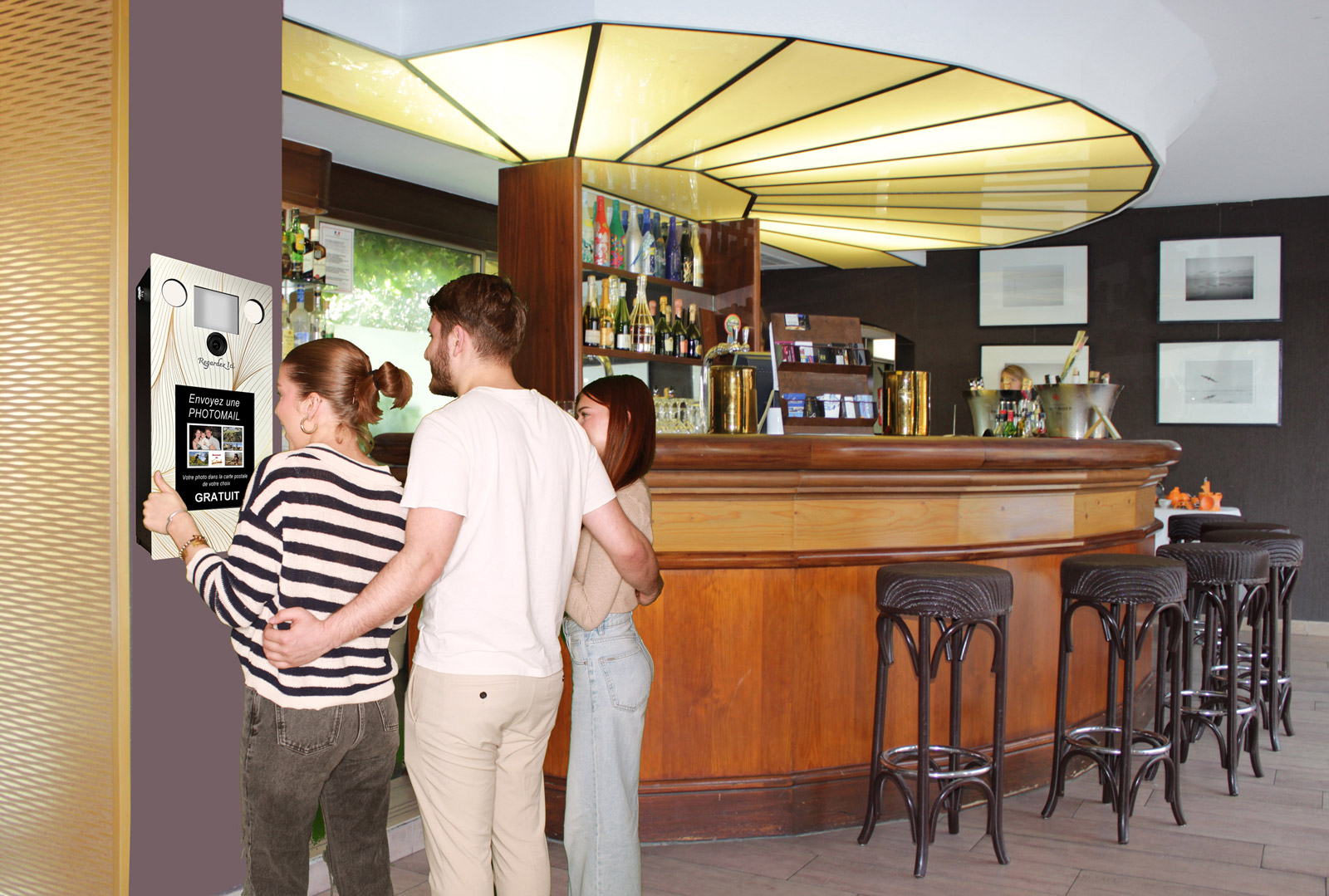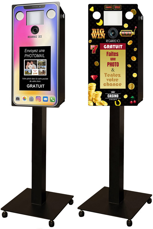 La borne Smartphone Géant est destinée à la photo digitale (sans impression) pour l’envoi de photo/mail. Elle trouve sa place dans les réceptions d’Hôtel, les bars à thème, les boites de nuit, les campings, les musées et les sites touristiques.